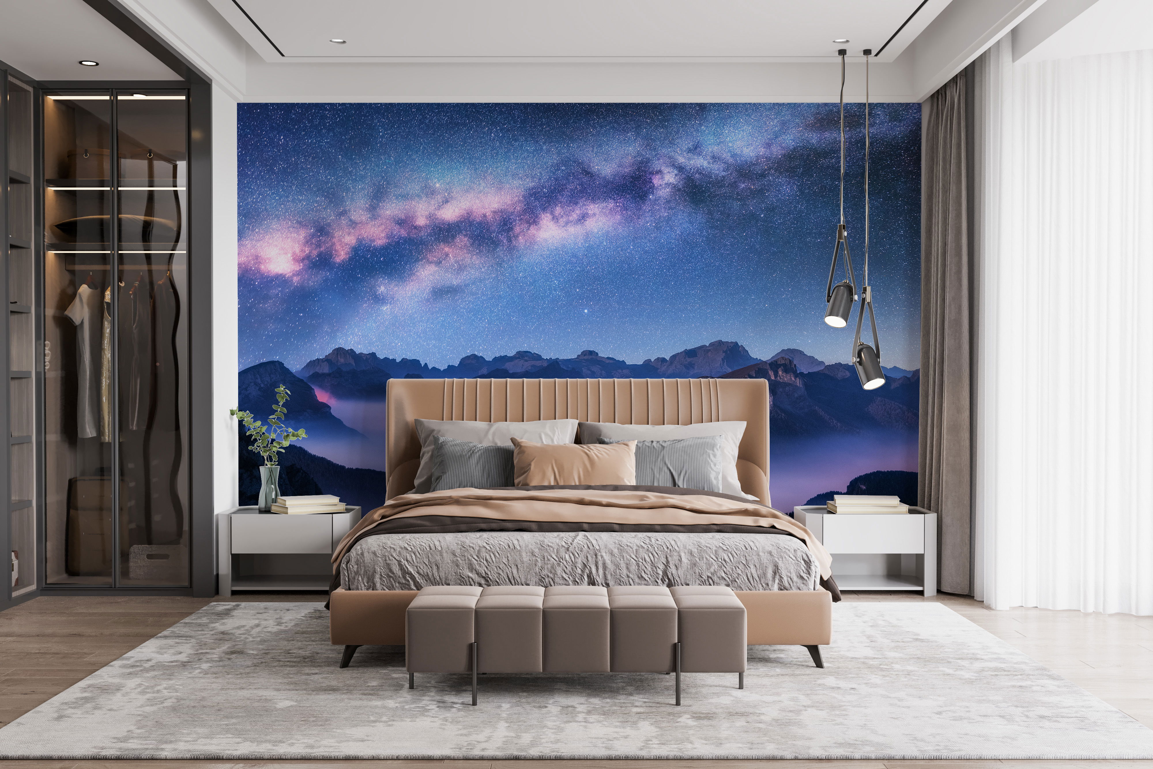 For a peaceful feel, many natural patterns work well. A soft leaf wallpaper decor can give the room an organic texture without being too busy. Think about subtle greens or muted tones. If you like the idea of vast, open spaces, a Bedroom Wallpaper Murals can give a sense of depth and quiet majesty. These often come in beautiful, muted blues, grays, and greens, giving a restful backdrop.Another popular choice for a light and airy room is clouds wallpaper. This type of paper can make the ceiling feel higher and the room feel softer, almost like sleeping outdoors under the sky. This is a very gentle, soothing option.