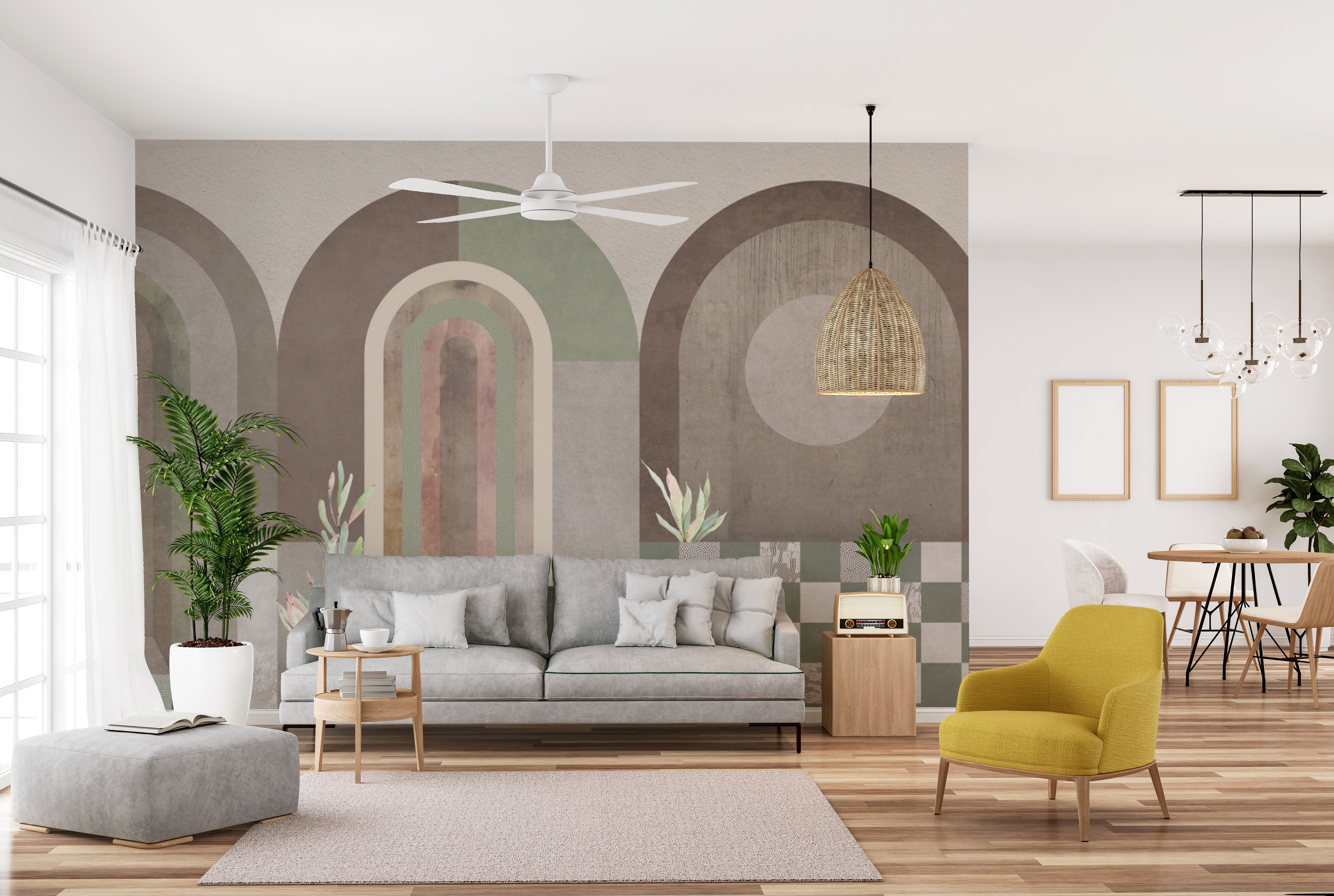 In open-plan homes, it can be difficult to define different living areas. Wallpaper is a great solution. You can use it to visually separate the dining area from the living room, or to create a cozy breakfast nook in a corner of the kitchen. A cheerful sky blue flower wallpaper in an alcove, for example, can clearly mark that small space as separate and intentional.